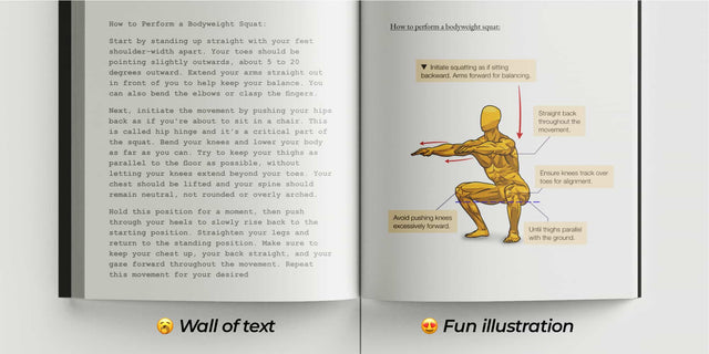 Think of it as learning to be a fitness ninja through a comic book. It's all about seeing and doing - because let's be real, pictures beat text any day when it comes to learning cool moves.